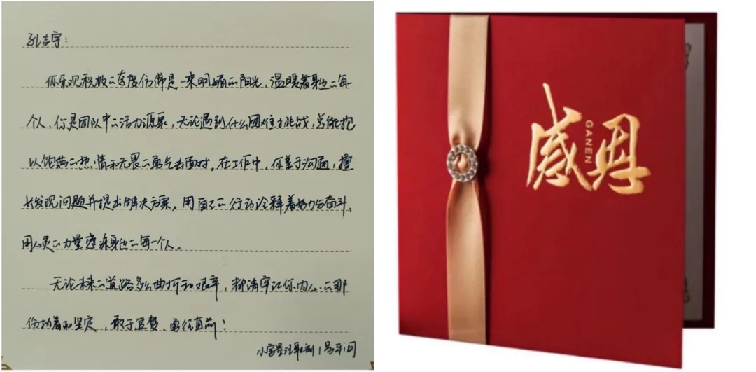 海陵衷心對(duì)他們的付出表示感謝,并為其準(zhǔn)備了感恩卡和禮物,直屬領(lǐng)導(dǎo)“驚喜出現(xiàn)”,將手寫感謝卡和禮物交給他們!