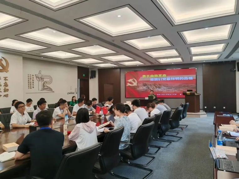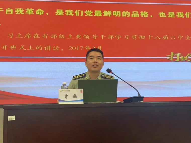 會議的第二項(xiàng),全體與會人員進(jìn)行了專題黨課學(xué)習(xí)。陸軍工程大學(xué)政治工作系曹超副教授為大家進(jìn)行了主題為《勇于自我革命是我們黨最鮮明的品格》的專題匯報(bào)。曹教授肯定了海陵黨支部的凝聚力、戰(zhàn)斗力,并以黃培炎和毛澤東關(guān)于“如何跳出治亂興衰的歷史周期律”的探討為切入點(diǎn),從以下三個(gè)方面進(jìn)行了詳細(xì)闡述: