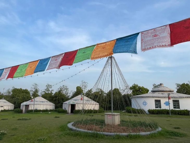 結(jié)束頒獎后,一行人談笑風(fēng)生地步行前往“蒙古大營”,走進用餐區(qū),一個個或大或小的蒙古包映入眼簾,落日余暉下的風(fēng)景讓人深感民族特色。大家圍坐在桌旁,享用美味晚餐,幸運的我們還觀賞到蒙古族歌曲、舞蹈、和馬頭琴的驚喜表演。